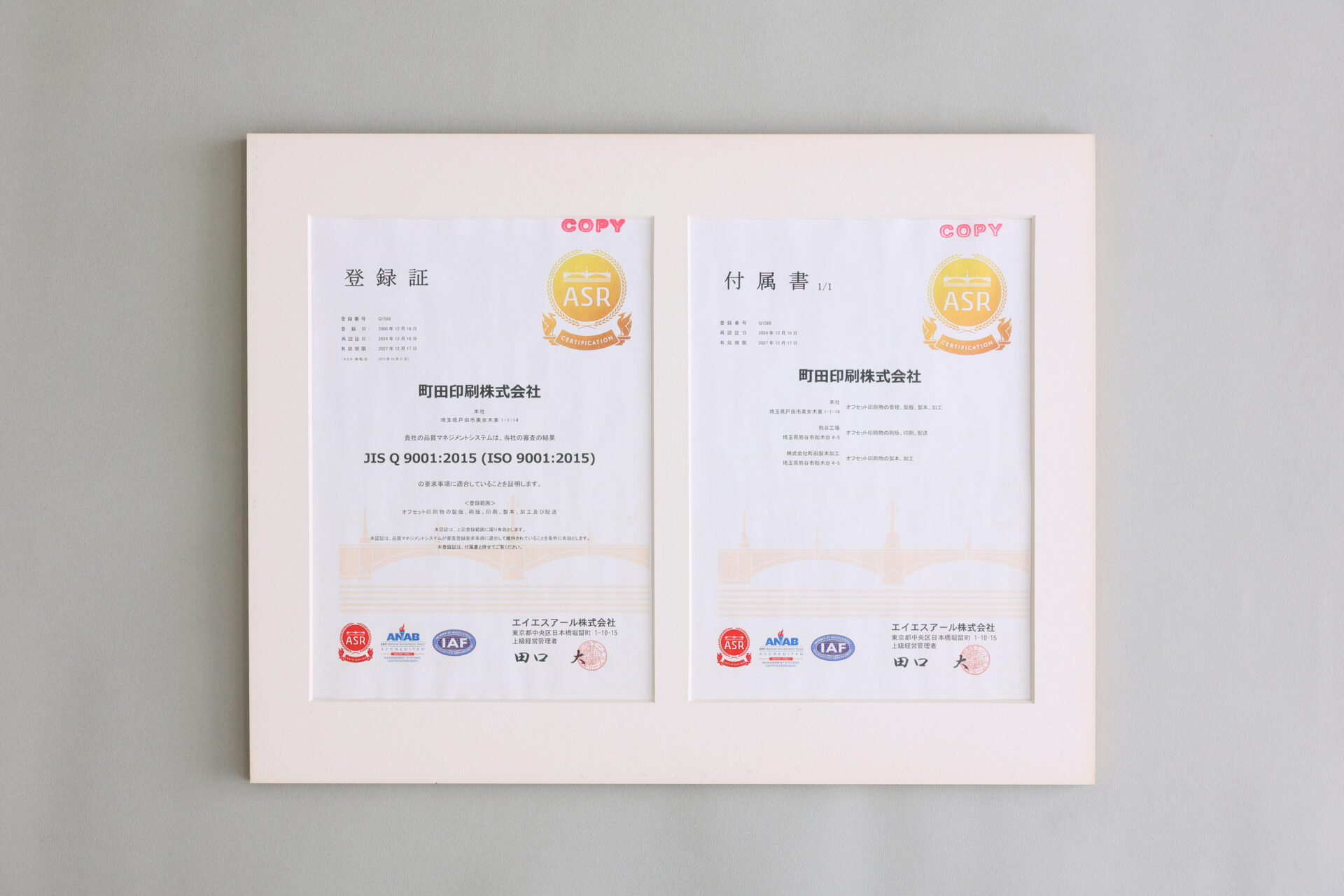 | 認証取得 | ISO9001品質マネジメントシステム |